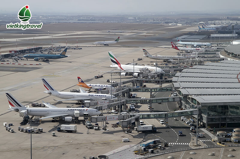 Đoàn làm thủ tục hàng không đón chuyến bay đến Paris, Pháp.