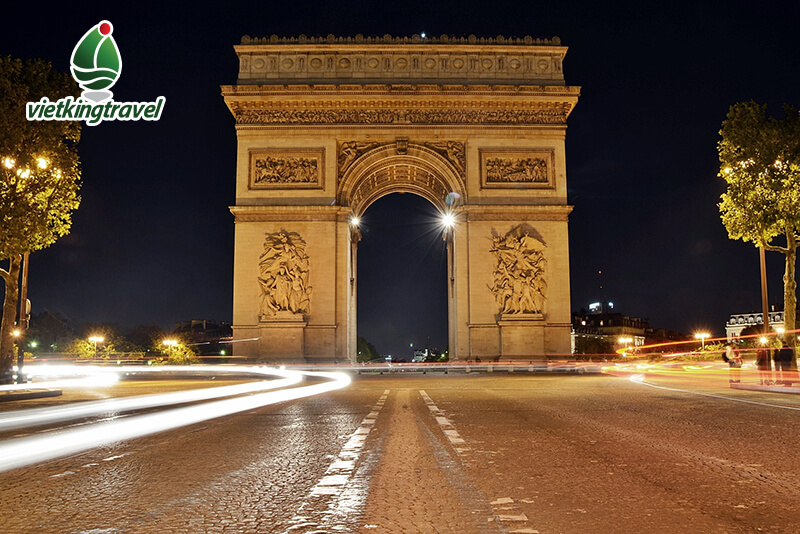 –Khải Hoàn Môn Paris (Arc De Triomphe):một trong những biểu tượng của Paris với kiến trúc mái vòm được xây bằng đá trắng nhằm vinh danh những chiến thắng rực rỡ của quân đội Pháp thời Napoleon.